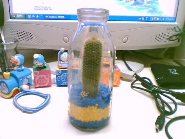 跟姐姐去逛大統一夜市(已倒)買的牛奶瓶仙人掌