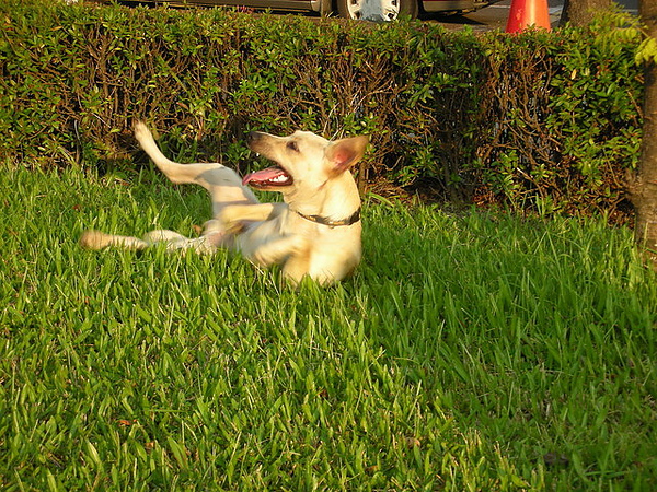 依然是很愛在草皮打滾耶