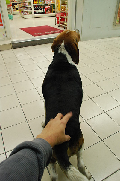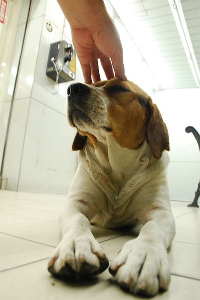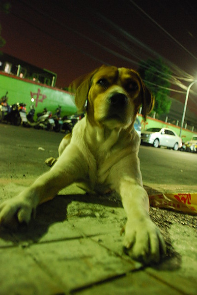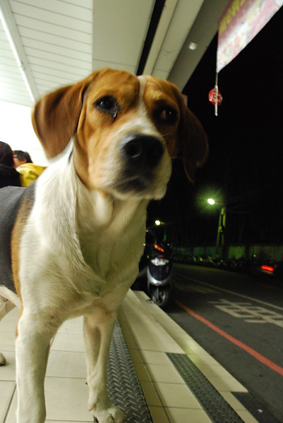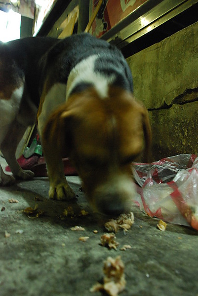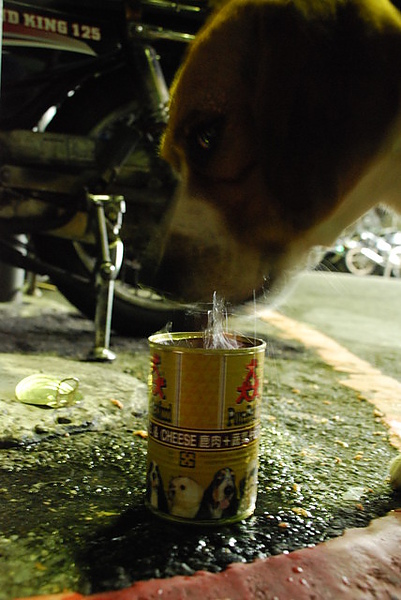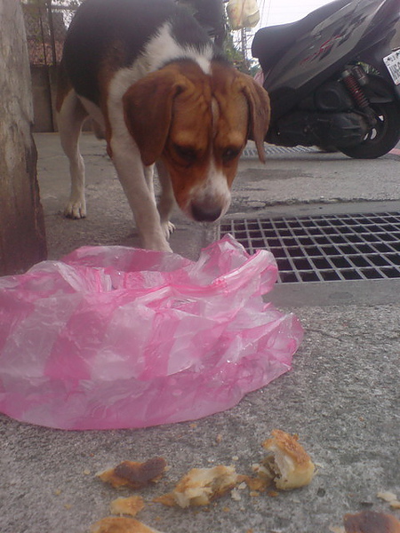 結帳時,她很兇狠地對我說:「ㄟ,少年ㄟ,你買罐頭是要餵這隻狗啊!拜託不要在我們便利商店門口餵他,他會賴在這邊,趕都趕不走!」