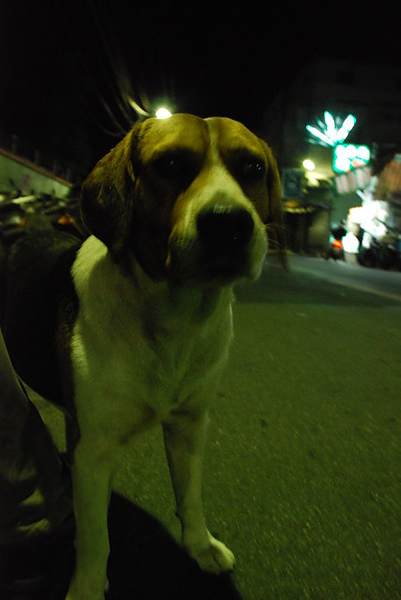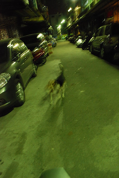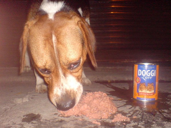 第二次見面時,已經夜深了,我在全家便利商店買了一個狗罐頭請他吃