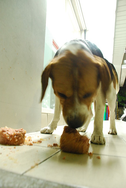 如果罐頭吃完了,我會在街上買攤販的東西請他吃,可能是流浪久了,他吃東西的口味很重