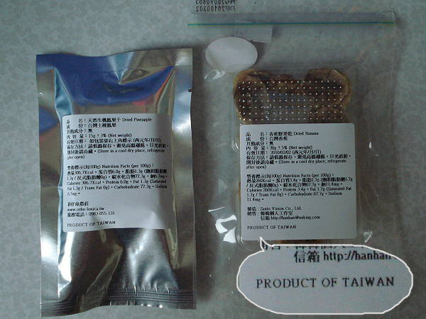 而我也順便訂了我很有興趣香蕉乾和鳳梨乾,