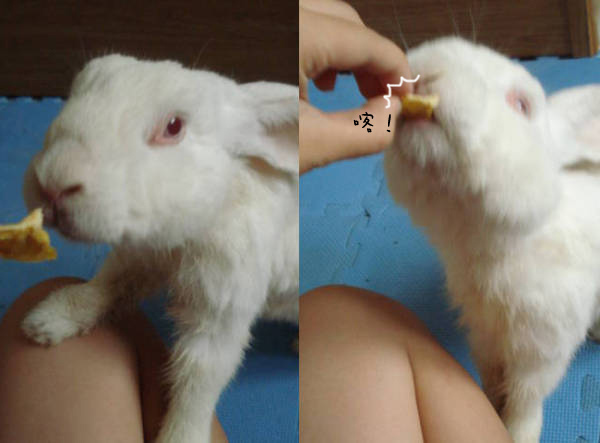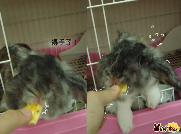 接下來,就來看看兩兔面對鳳梨乾到底是什麼樣子吧XD