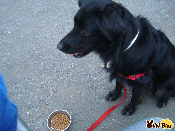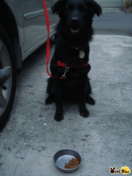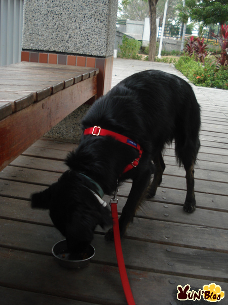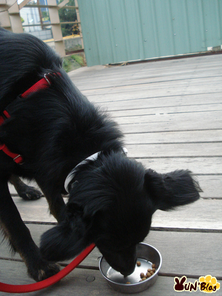 這次回家帶黑妞去散步時,開始給讓她在戶外吃飯,