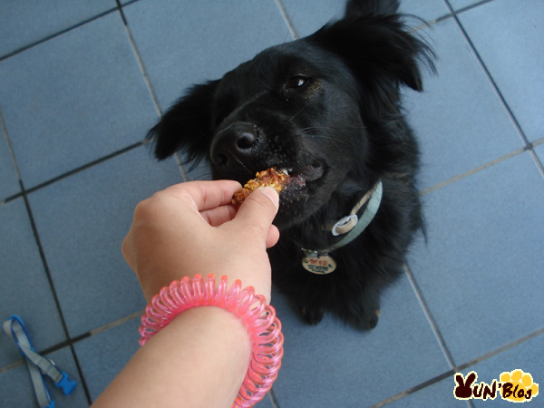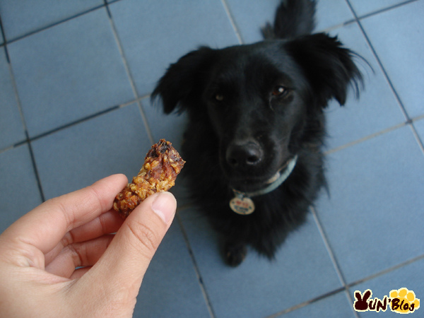 試吃的對象是棒狀的蔓越莓雞肉玄米甜甜圈~