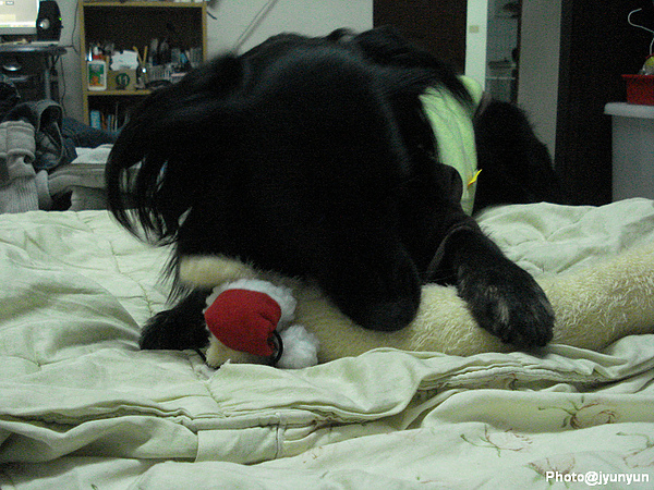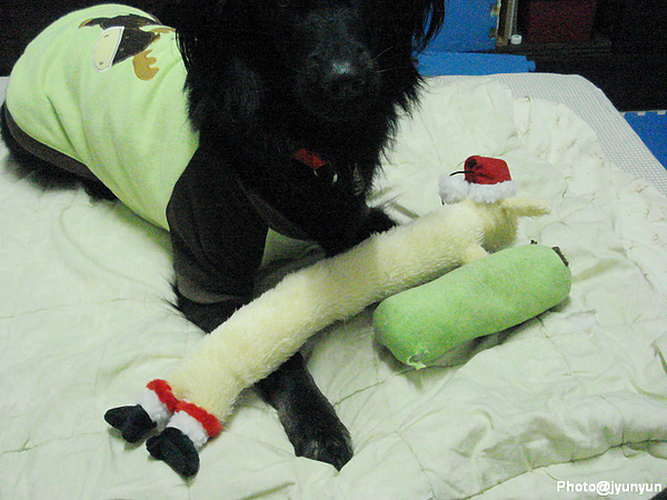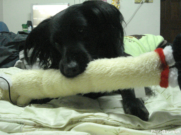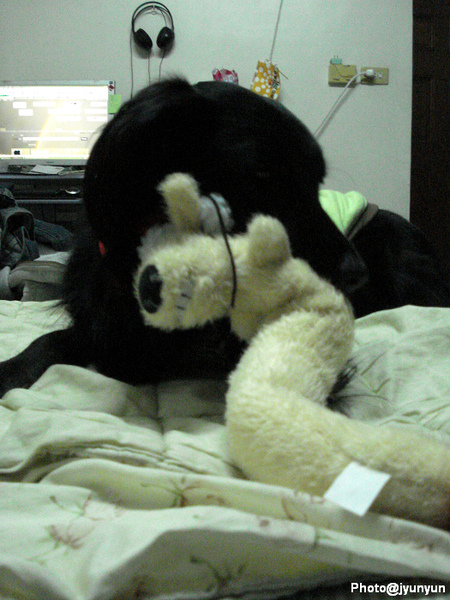 接下來就是黑妞跟新玩具相見歡的時候了,這是黑妞第一隻Loofa唷!