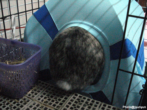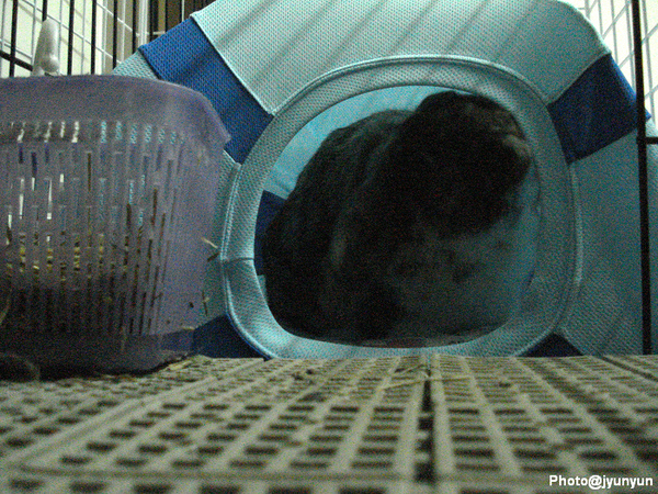 不爽的時候就拼命用前腳在裡面挖啊挖的,我和我姊都戲稱這個為洩恨帳棚XDDD