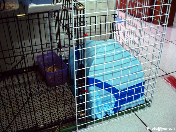 牙牙的籠子是兩呎半的折疊籠,空間再怎麼大也放不下這個窩,