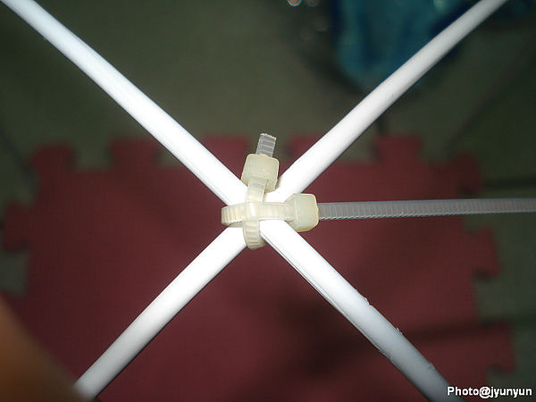 頂端交叉的部分用束帶或是任何可以綁的材料固定