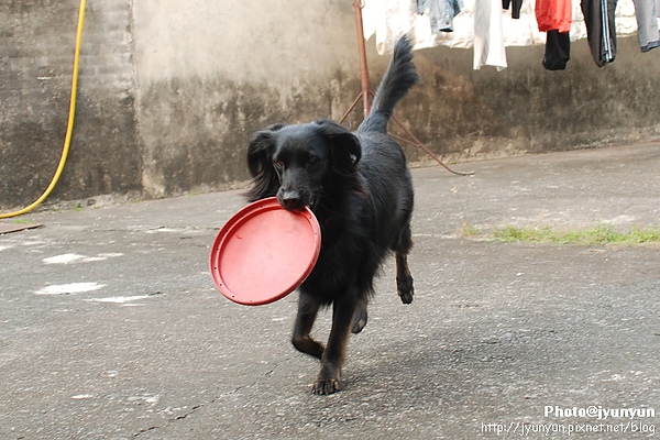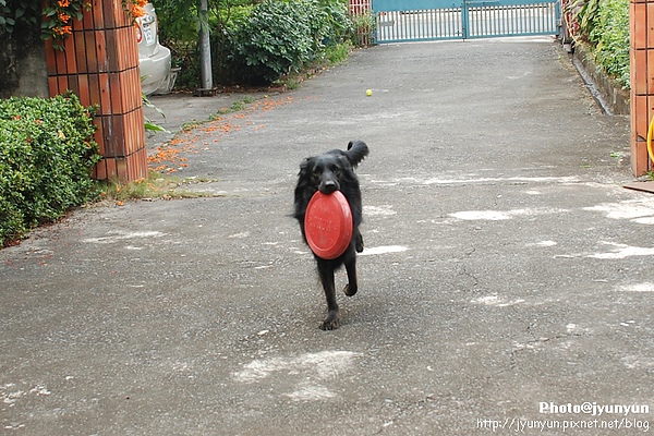 黑妞已經可以願意在低干擾的戶外集中注意玩飛盤!