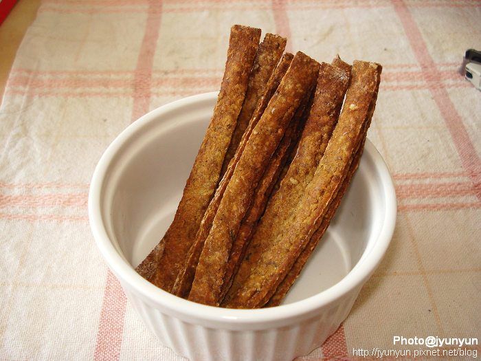 雞肝燕麥棒 (前端的粉是在桿平怕黏住灑的,忘記稍微把它拍掉了:-p)