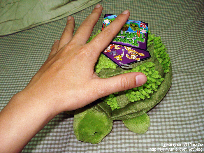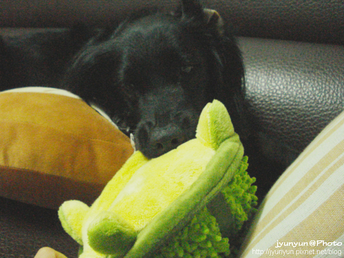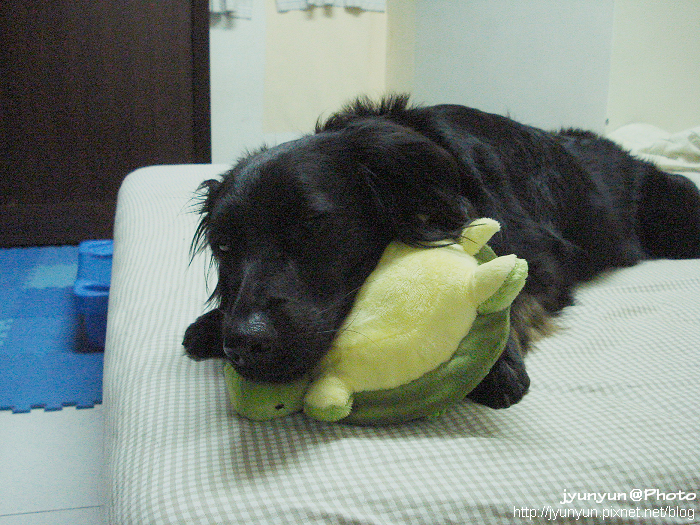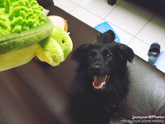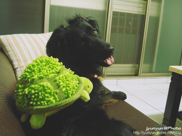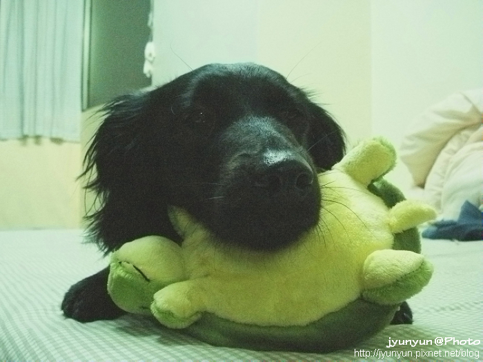 看她咬著烏龜有種莫名的喜感~(晚上室內光線不佳,ISO開很高,太傷眼請見諒