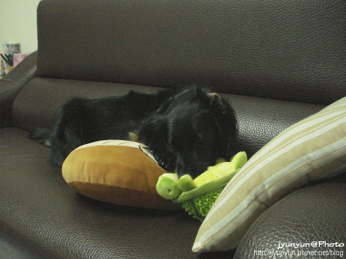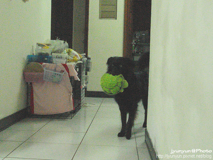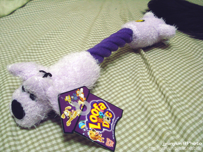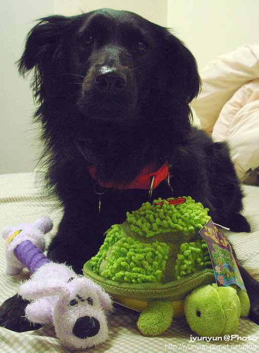 目前還沒拆掉吊牌給黑妞玩,不過黑妞已經知道它的存在了,