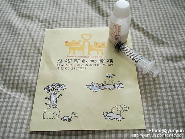 第一次拿到詹姆斯的藥袋(也不希望太常拿到啊="=),覺得好可愛所以來一張~