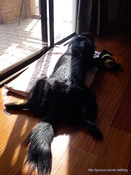 看黑妞對側躺的口令反應,大概可以看得出對環境放鬆的程度~~