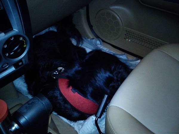 如果沒有玩具轉移注意,車子發動時黑妞反應蠻大的。