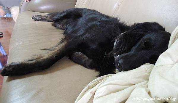 天冷冷,黑妞小朋友上了沙發就像黏住般睡個不停