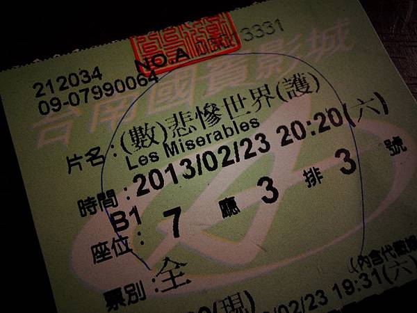 還有,看到中後段時,右方一對男女,女的好像頗不耐煩的頻頻看手機(我一直被手機燈光影響到),