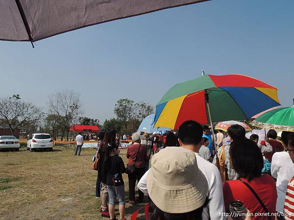 人多找個不晒太陽又可以坐著休息的地方還真不容易,後來躲在某個零錢兌換處的帳篷後面,