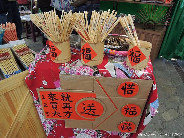 有一攤擺了許多不成雙的NG筷,我們一家(缺一)在這停留挑選很久XD