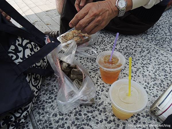 簡單的吃了一餐(用入場卷消費折抵買的油飯粽子和飲料...怎麼都是糯米XD|||)
