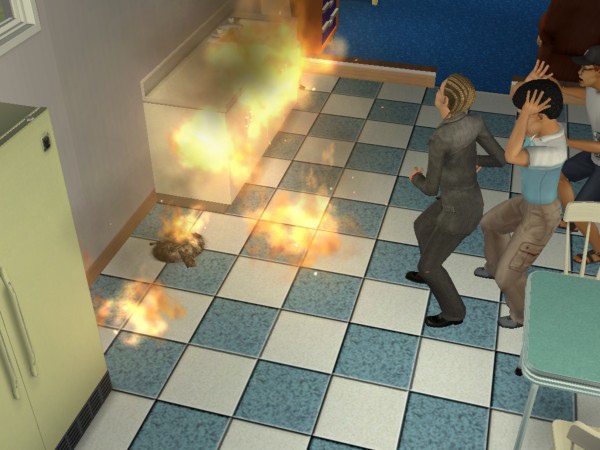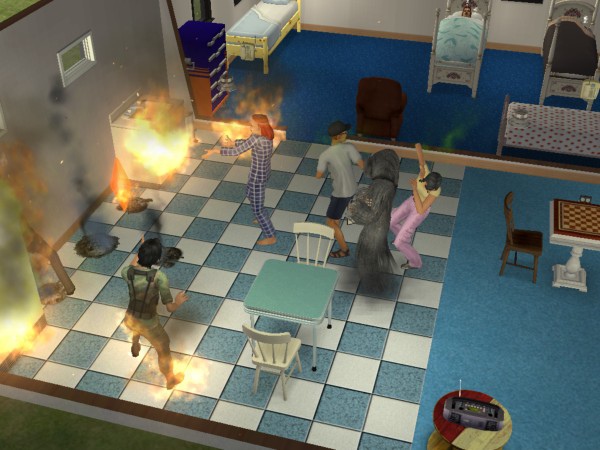 好不容易從軍中趕回家救火,卻遭到火舌反撲(已經有人先被燒掉了....)