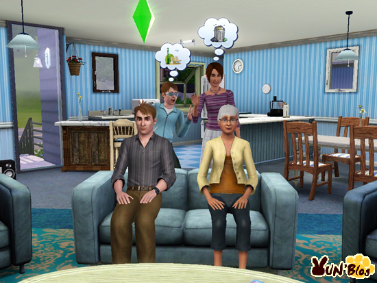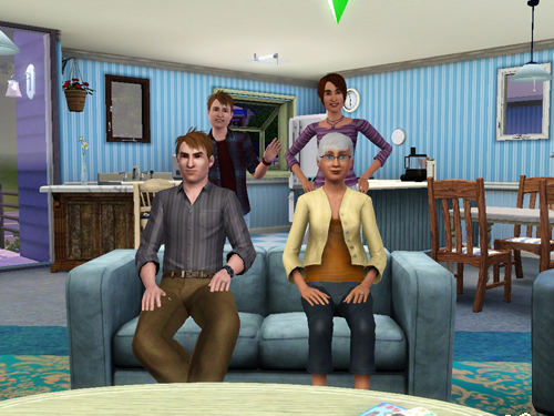 (前右:始祖-諾娜小人,前左:NPC愛德華小人,後右:女兒潔西嘉,後左:兒子傑諾)