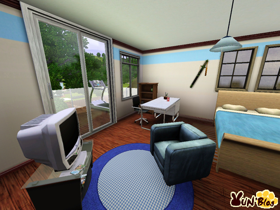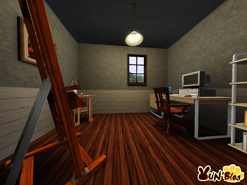 右邊的門通往工作室,中間是兒子的房間,左邊是女兒的房間。