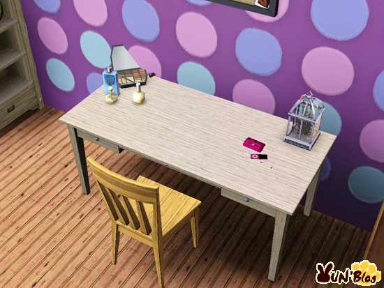 桌上放著化妝品和出門必備的iPon(下載的物件)。